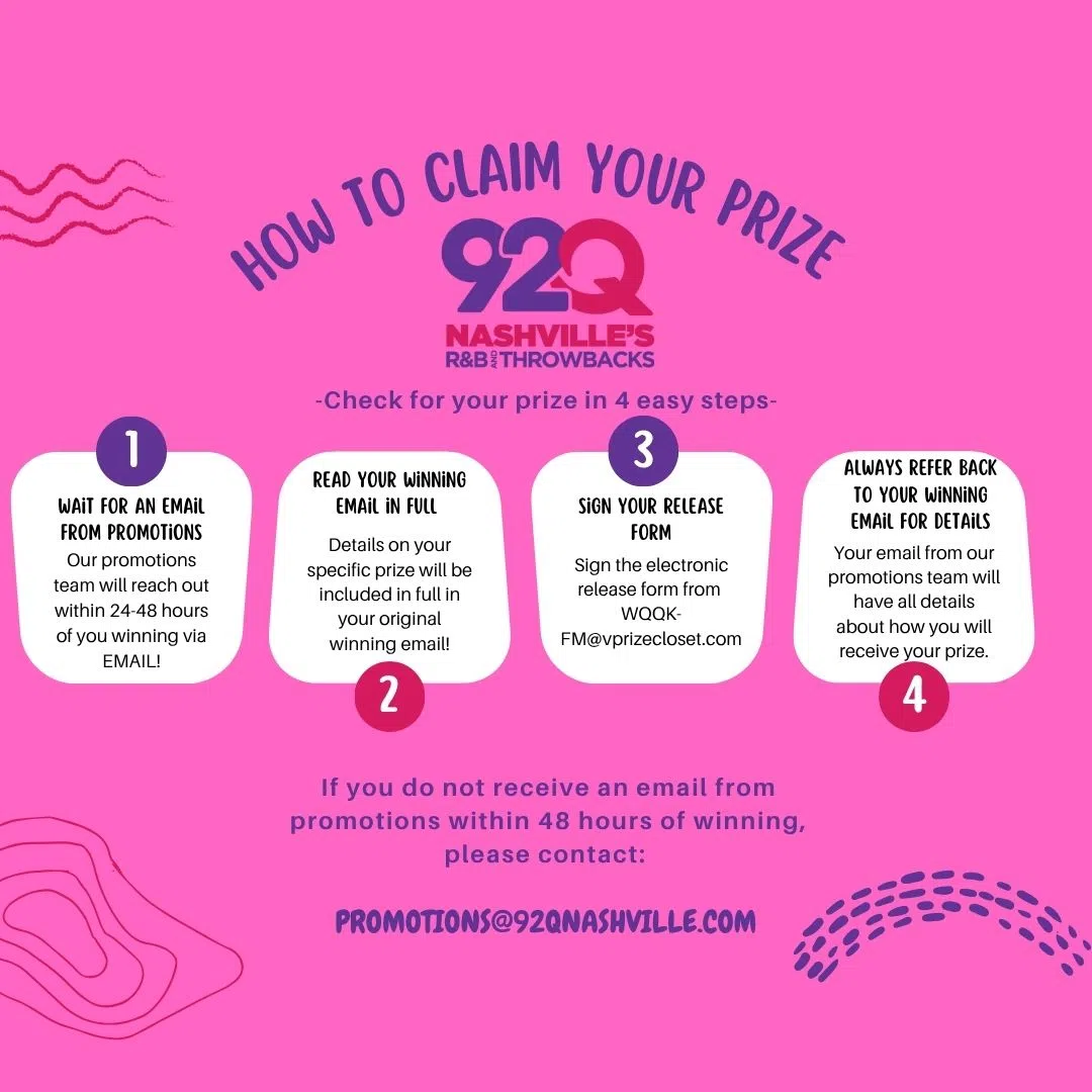Please note all of these prizing details and reference your winning email before contacting Promotions@92QNashville.com