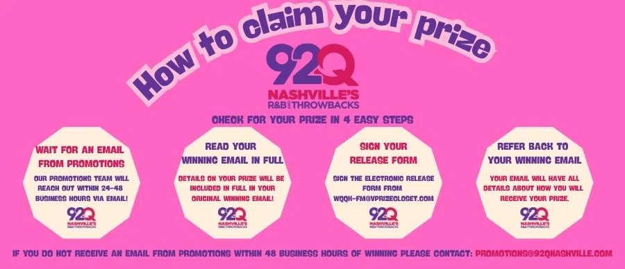 Please note all of these prizing details and reference your winning email before contacting Promotions@92qnashville.com!
