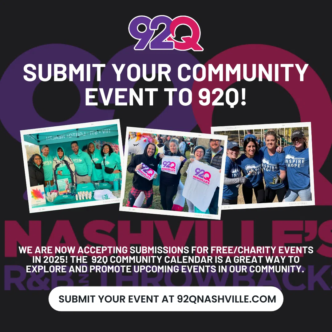 Submit your community event to 92Q Nashville – We are now accepting submissions to the 92Q Community Calendar for free/charity events in 2025! Here at 92Q, we believe the power of community is e...