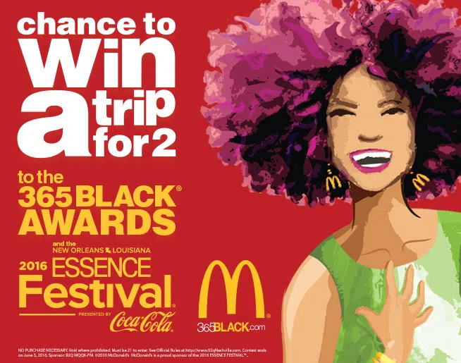 Nashville! Don't miss the hottest festival of the summer - the 2016 Essence Festival presented by Coca-Cola. McDonald's wants to take you there! Mariah Carey, Jeremih, Kendrick Lamar, Andra Day, Leon ...