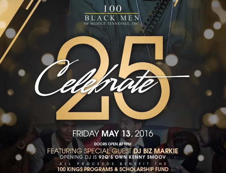 Join the 100 Black Men of Middle Tennessee as they celebrate 25 years serving young black men in our Middle Tennessee community. May 13th at the Cannery Ballroom, it’s a special pre-gala party w...