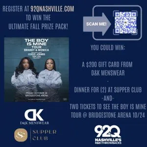 92Q Nashville is your station for the biggest show hookups in town! Want to win? Text BOY to 615-737-9292 now! If a member of the…